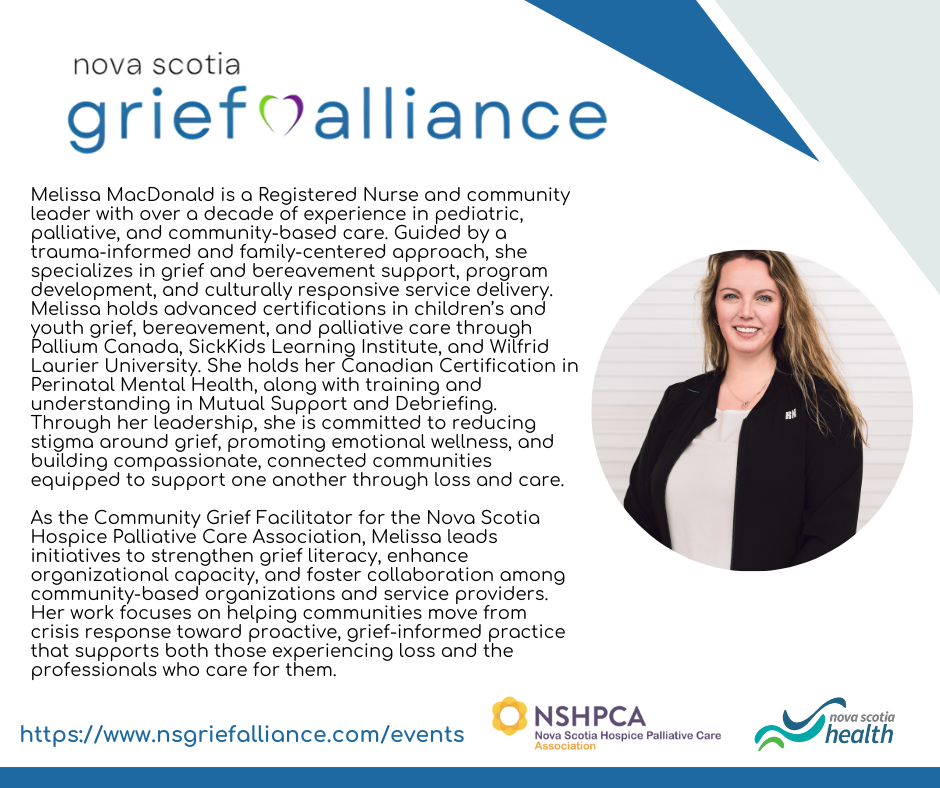 The Nova Scotia Grief Alliance hosted its first province-wide symposium on November 18, 2025, bringing together diverse voices to learn, share, and strengthen connections in grief support. A summary of the event can be downloaded below.