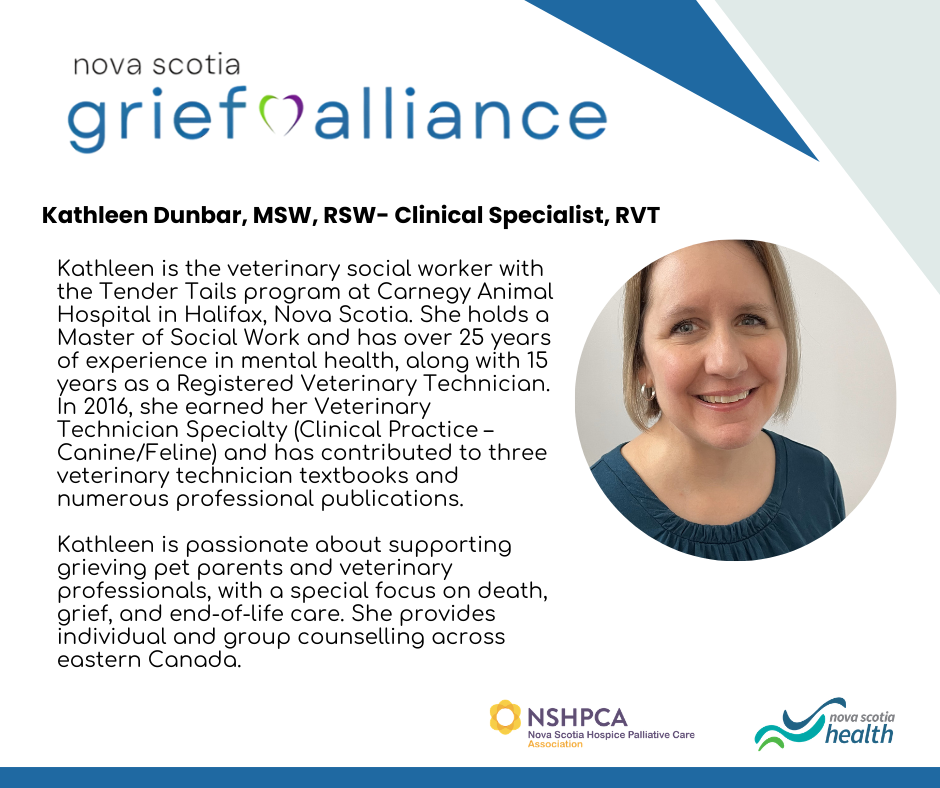 Navigating Death and Grief in Veterinary Medicine - Kathleen Dunbar, MSW, RSW, Clinical Specialist, RVT.